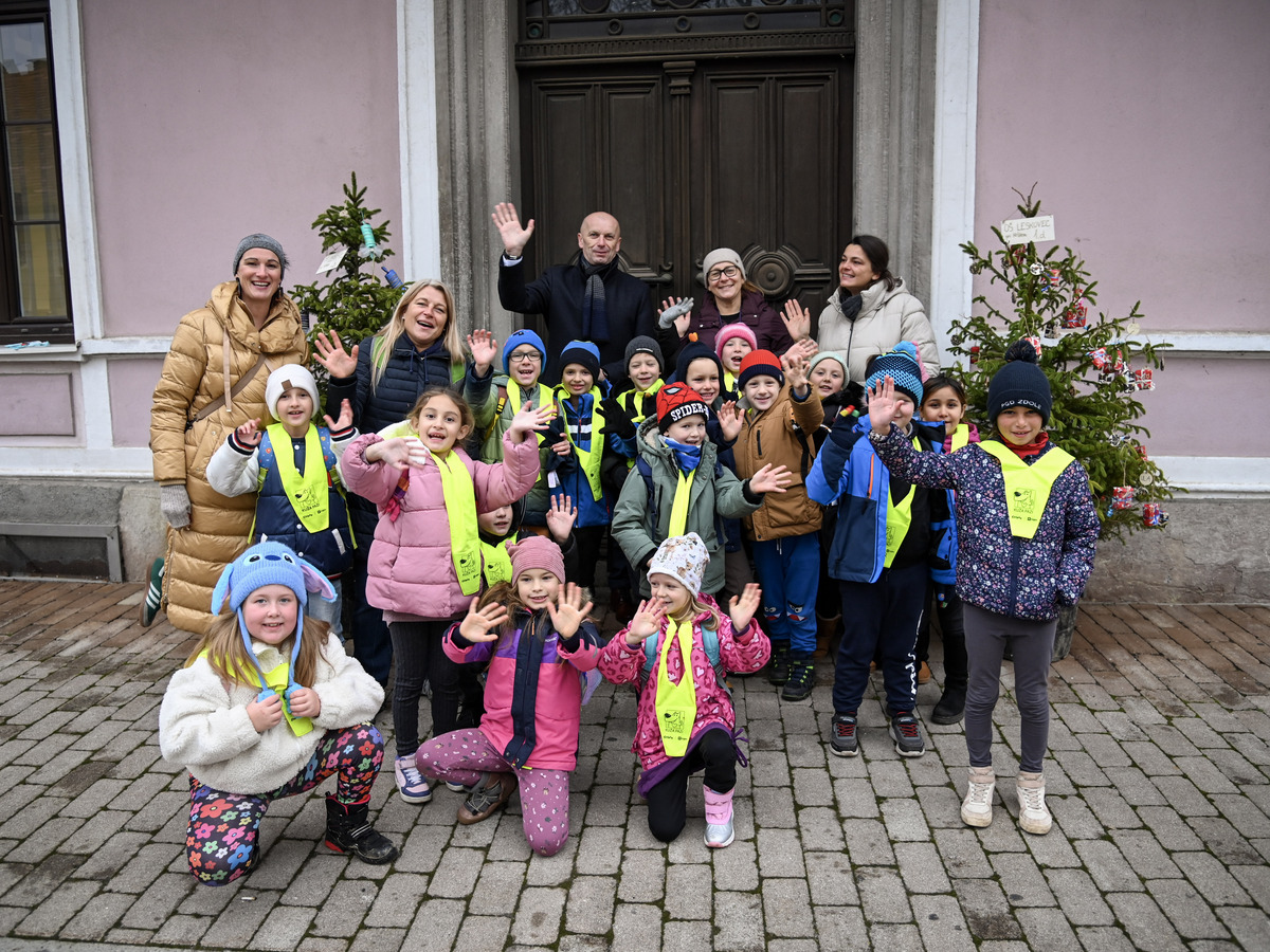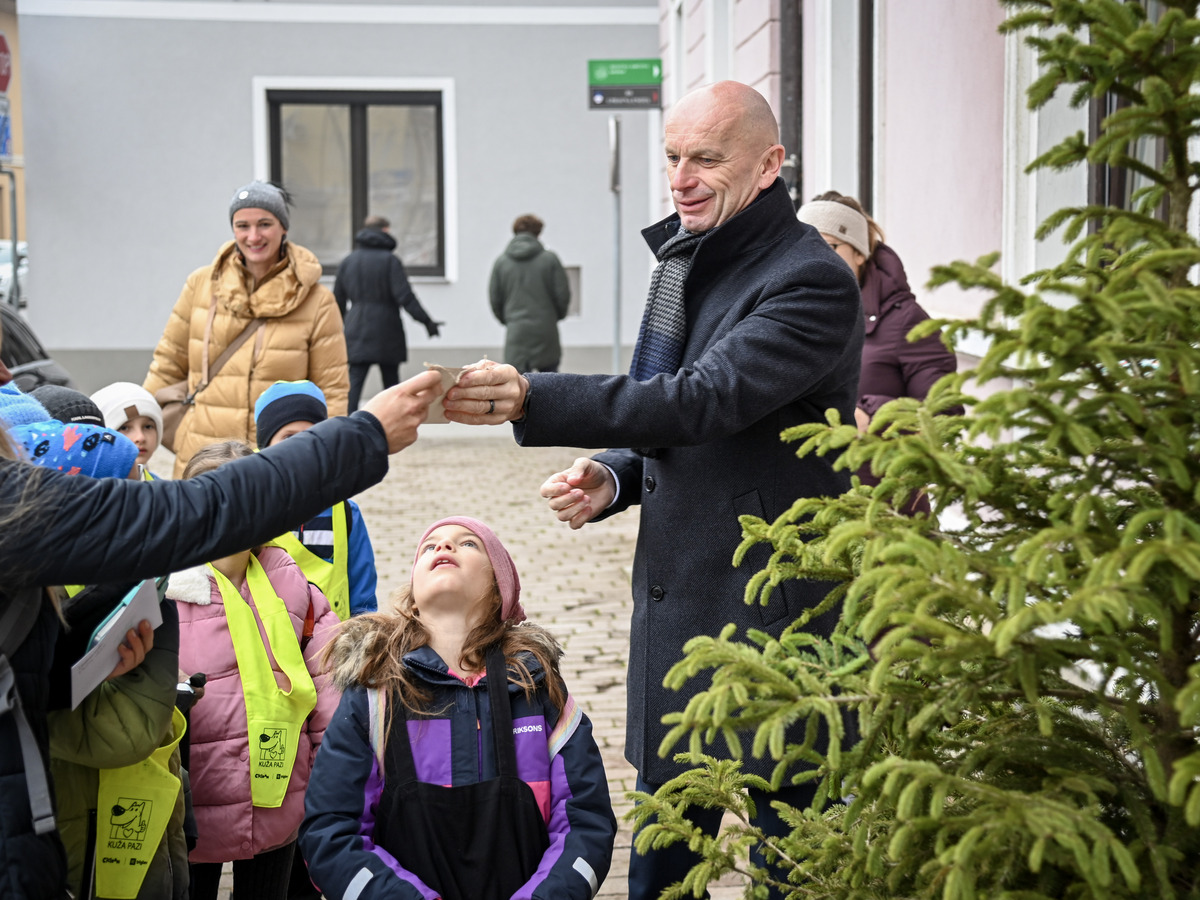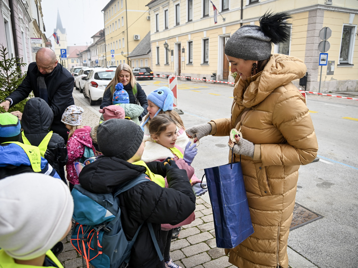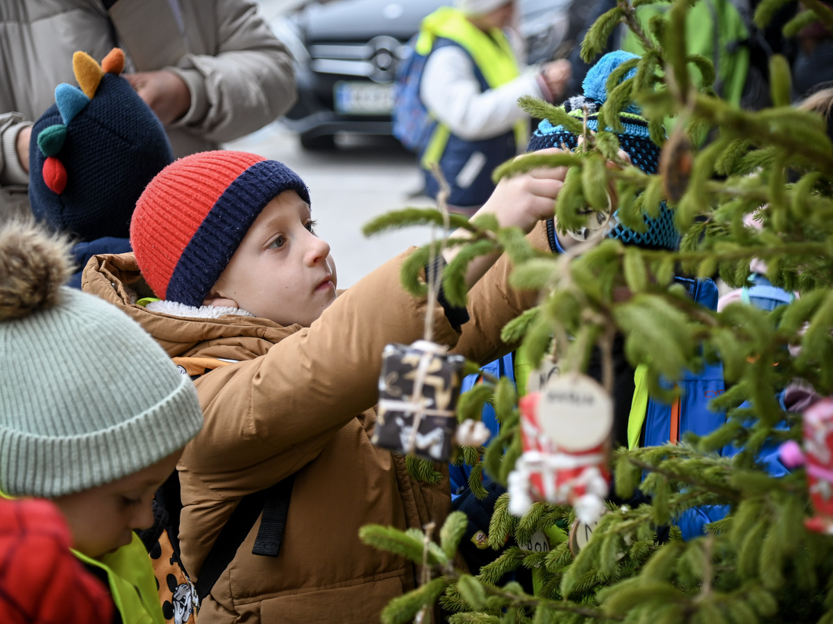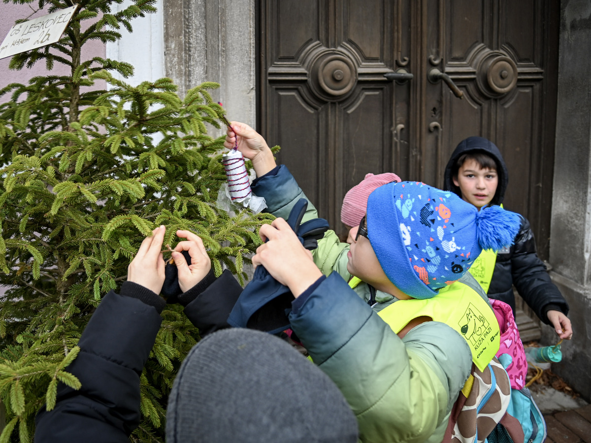 Otroci in župan okrasili smrečice v starem mestnem jedru