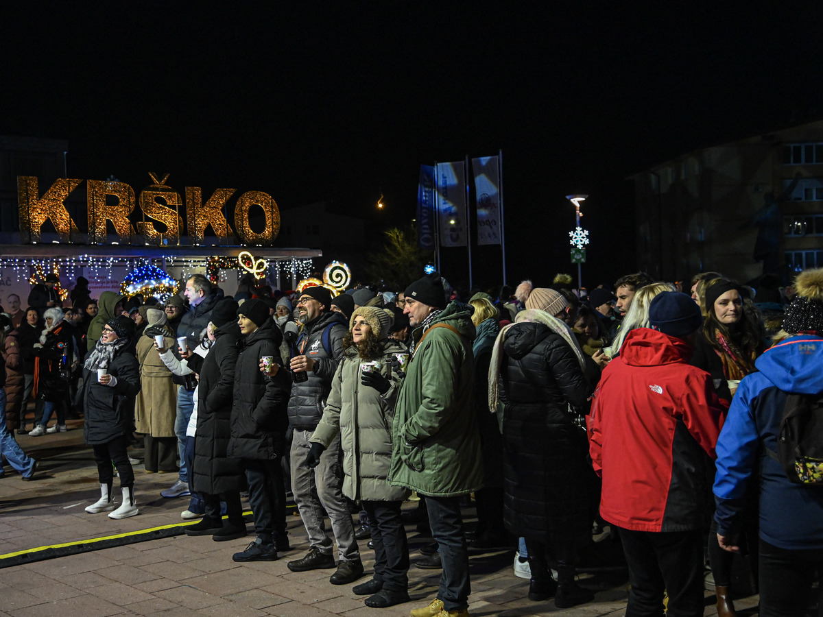 Zbrane je tik pred polnočjo pozdravil tudi župan Mestne občine Krško Janez Kerin, ki je v družbi moderatorke večera Klavdije Kerin in zbranih na trgu odšteval zadnje sekunde starega leta, obiskovalcem in občanom pa zaželel vse dobro v letu 2026.