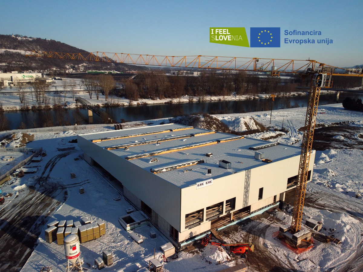V zaključni fazi je nameščanje strešne kritine, kjer so vgrajeni svetlobniki, ki bodo zagotavljali dodatno naravno osvetlitev notranjih prostorov. Zgornja etaža objekta je z bočnih strani oblečena v fasadne panele, izvaja pa se tudi že montaža oken, s čimer se objekt zapira, kar bo omogočilo nemoten potek nadaljnjih aktivnosti v notranjosti.