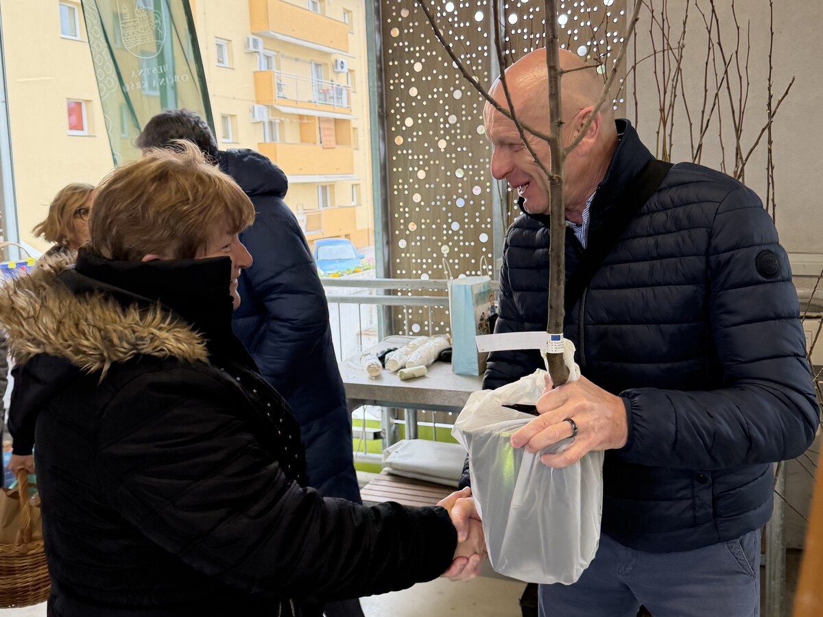 V soboto sta župan Janez Kerin in predsednik Čebelarske zveze Krško Anton Urek na velikonočnem sejmu na Tržnici Videm obiskovalcem brezplačno delila sadike lip in sadnega drevja, ki jih je Mestna občina Krško prejela s strani Čebelarske zveze Slovenije. Ta že peto leto zapored razdeljuje sadike medovitih rastlin med slovenske občine.