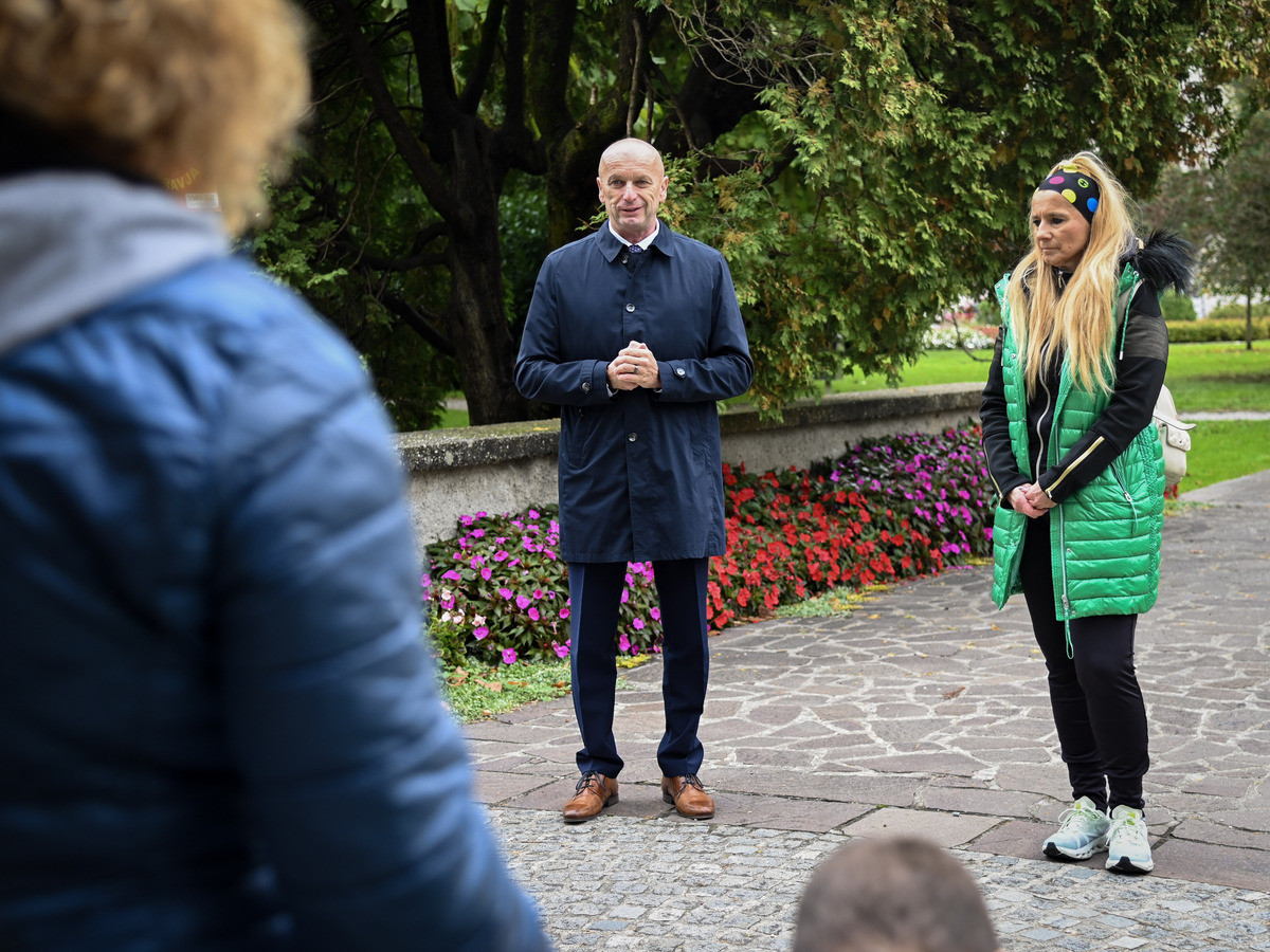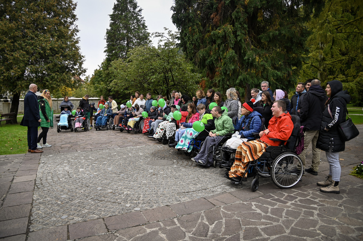 Ob svetovnem dnevu cerebralne paralize, ki ga obeležujemo danes, 6. oktobra, je župan Mestne občine Krško Janez Kerin v mestnem parku pozdravil člane Društva Sonček Posavje.